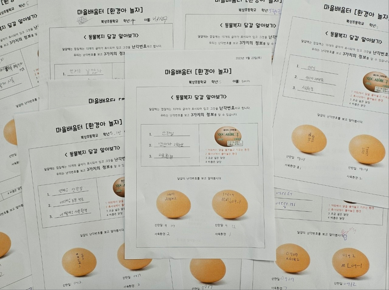 환경아놀자: 동물복지달걀에 대해 배우고 실제 동물볼지달걀을 만져본 후