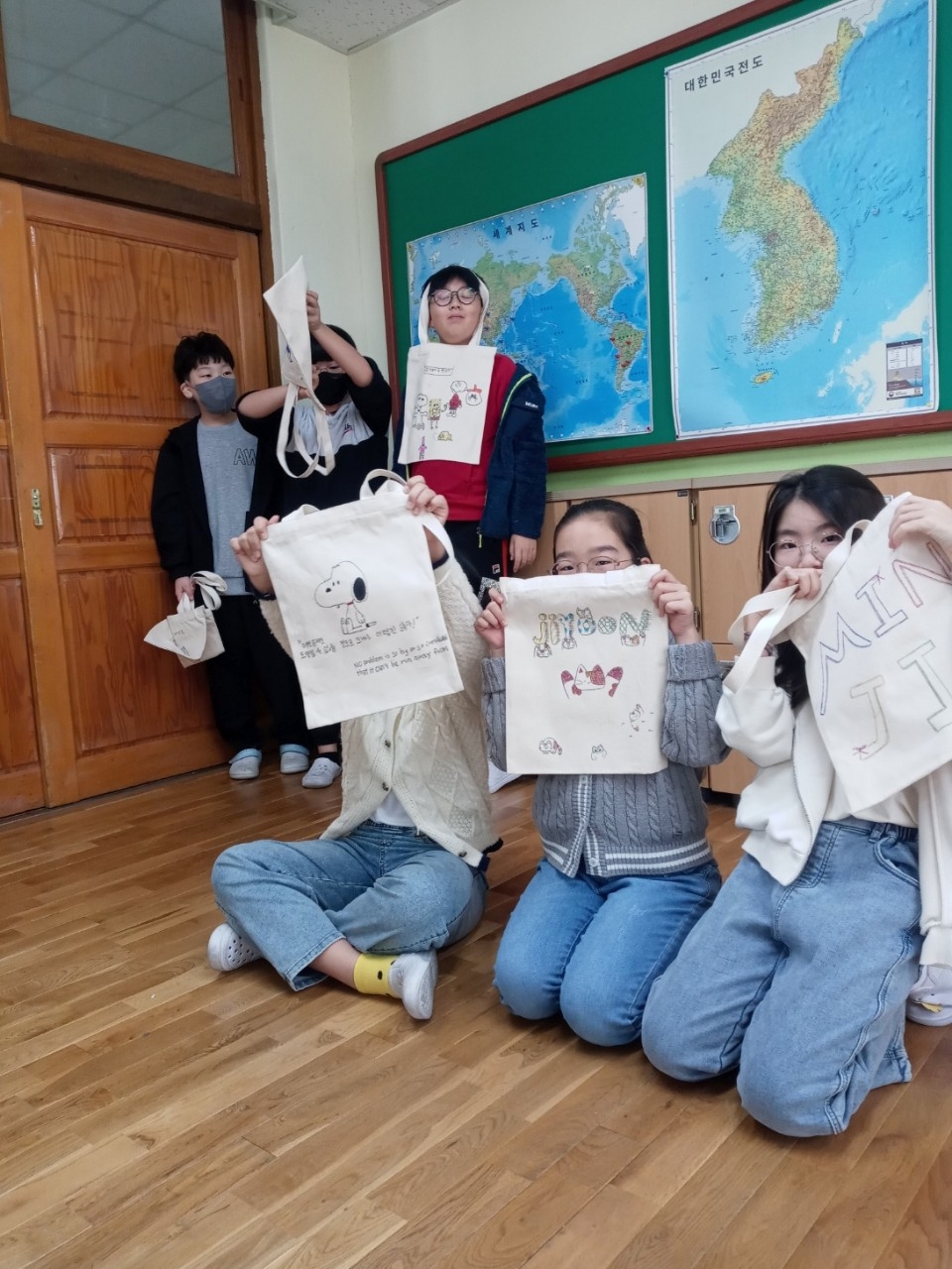 환경아놀자: 세상에 하나뿐의 나만의 에코백을 만들었습니다.