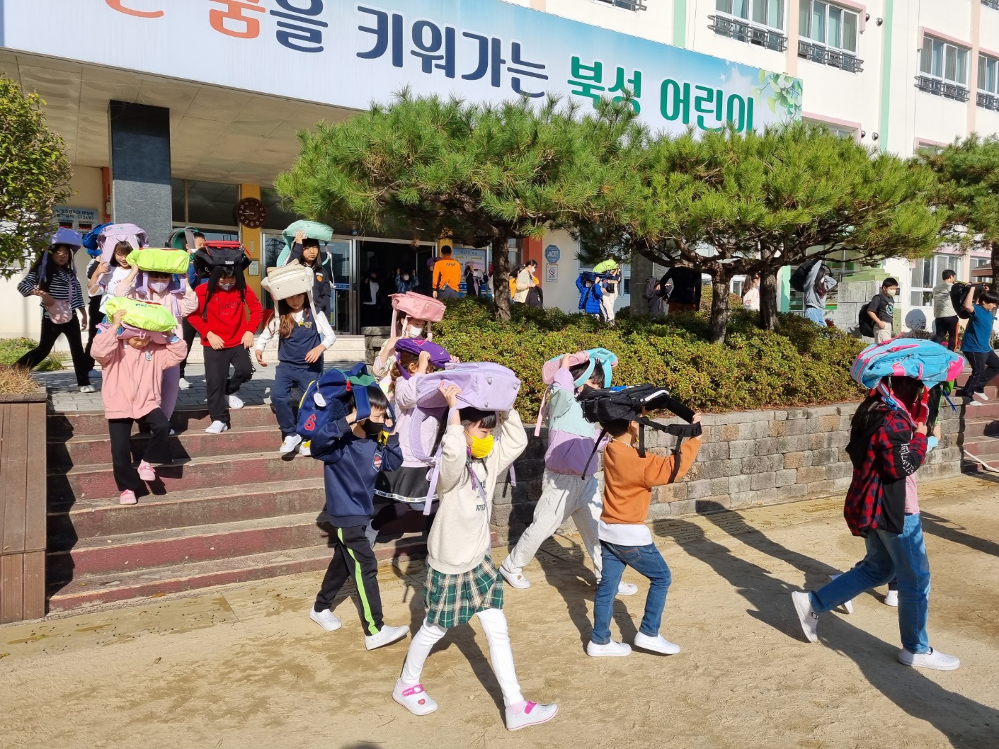 교장선생님 강평 순으로 안전사고 예방을 위한 재난대응 훈련에 다함께 참여하였습니다.