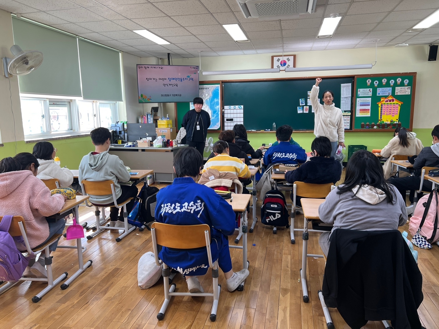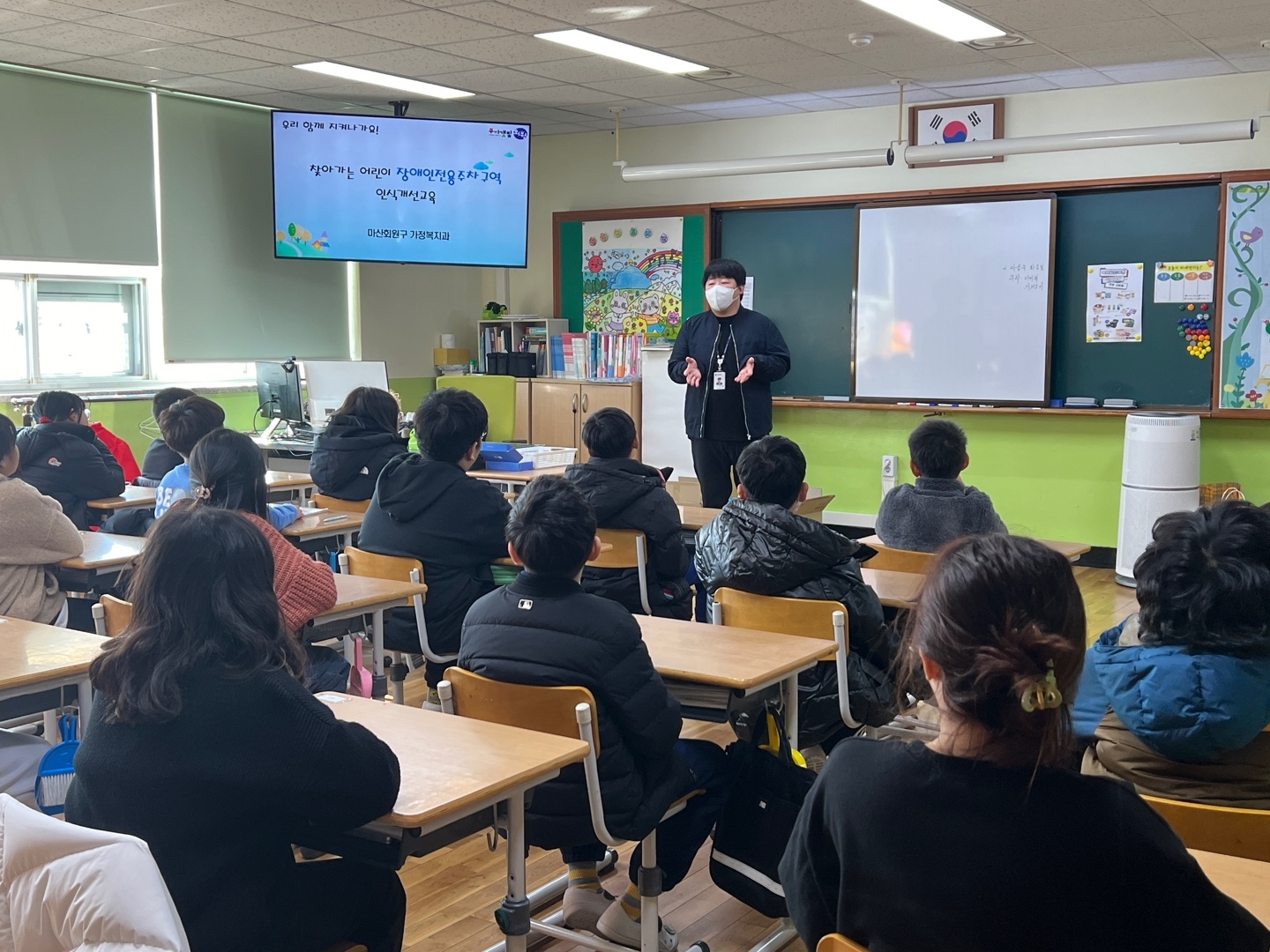 마산 회원구청 가정복지과에서 본교 4학년들을 대상으로 장애인식개선교육을 실시해주셨습니다.