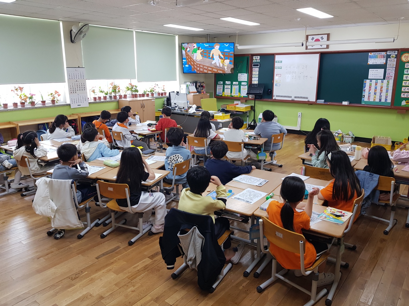 다. 내용: 2024학년도 1학기 장애인식개선 주간을 맞이하여 전 학년을 대상으로 대한민국 1교시 영상 시청 후 학습활동을 실시하였습니다. 이번 대한민국 1교시 영상을 통해 시각장애인 안내견에 대한 정보, 시각장애인이 겪었던 학창 시절 에피소드, 장애인보조공학기기를 알아보았습니다.