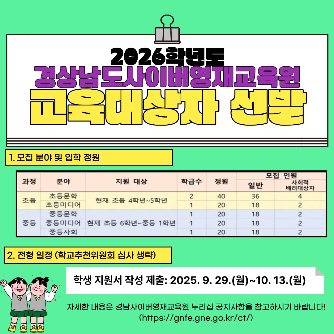 2026학년도 경상남도사이버영재교육원 영재교육대상자 선발 계획 안내